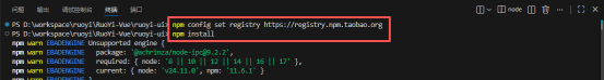 npm config set registry https://registry.npm.taobao.org(4) 执行命令安装依赖: