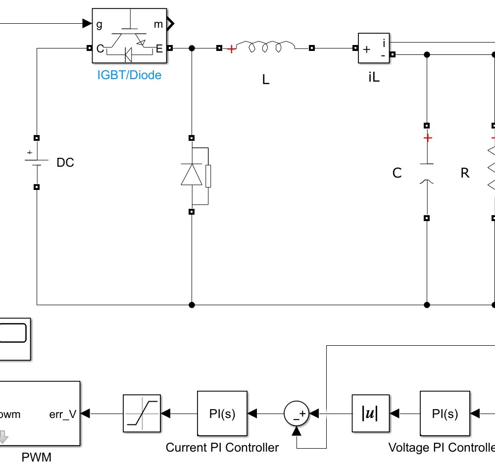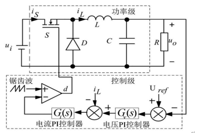 BUCK降压电路Matlab仿真模型双闭环和开环 Matlab仿真可写报告 双闭环控制的Buck变换器系统如图5所示,它主要由功率级与控制级两个部分组成。 其中,功率级电路为Buck变换器,由开关管S、二极管D、滤波电感L与滤波电容C组成。 控制级包括电压PI控制器Gv(s)、电流PI控制器Gi(s)与PWM调制器,通过生成占空比d来实现对功率级的控制。