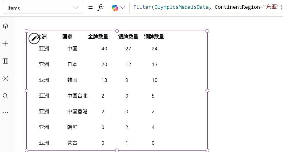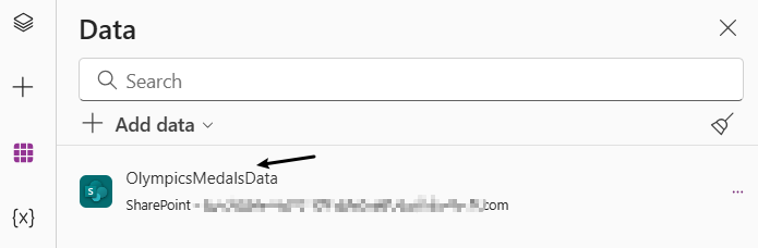 在PowerApps中,添加巴黎奥运会奖牌数据所在的SharePoint online list,