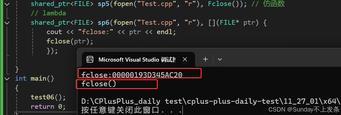 shared_ptr<FILE> sp5(fopen("Test.cpp", "r"), Fclose()); // 仿函数