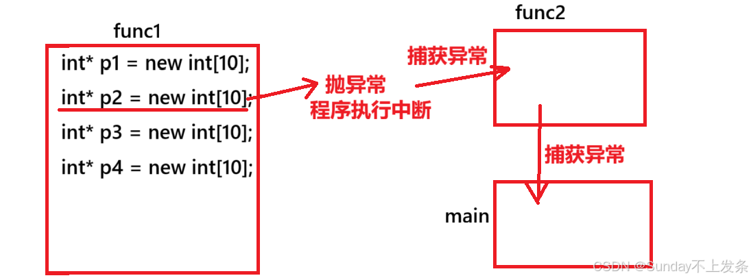 这里我们可以先通过一个"异常的重新抛出"来解决一些简单的场景:假如我们在divide函数内部通过new的方式动态申请了内存,就可以通过异常重新抛出的方式解决内存泄漏的问题。