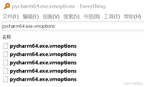 所以:你电脑有几个vmoptions文件,它们就是管理启动的配置,有那么多个,新安装的又怎么打开,又怎么启动,因为:这个文件的名字 不管老的 新的 都是一样的,叫:pycharm64.exe.vmoptions。没有版本后缀,我嘞个豆~~~,我就算去修改配置,内存啥的,连我自己都不知道,它会去用哪个