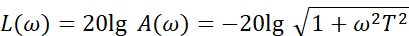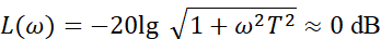(1)当 ω ≪1/T 时,对数幅频特性可近似为