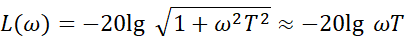 (2)当 ω ≫1/T 时,对数幅频特性可近似为