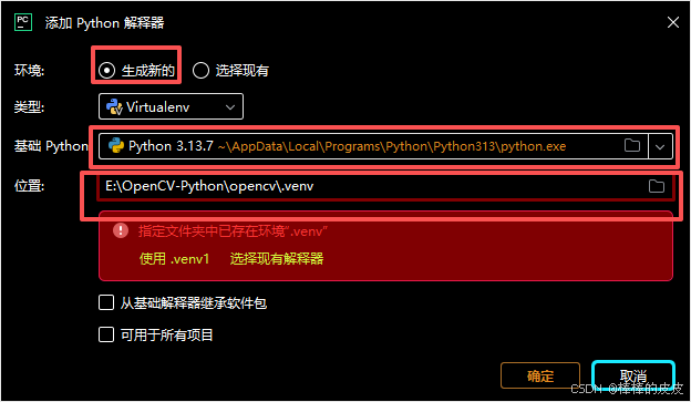 左上角的文件→设置→Python→解释器→添加解释器→添加本地解释器