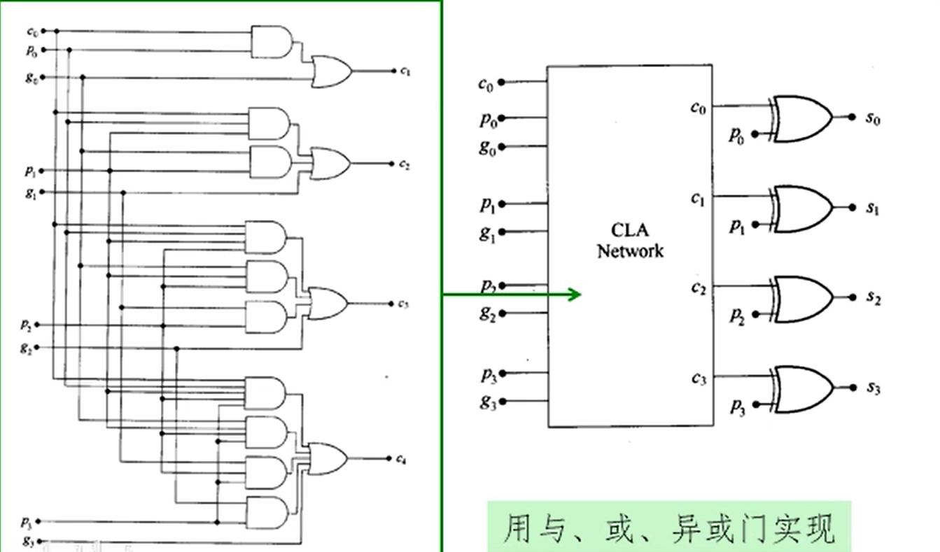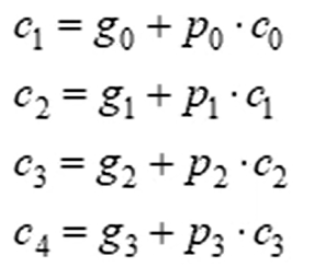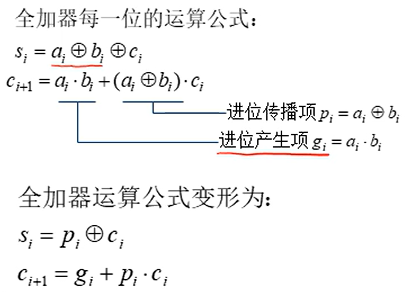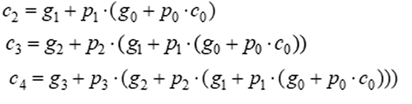 上式得g和p我们都可以根据ab求出。C0由A0和B0决定,这一位不存在上一级进位数,所以可以直接根据A0和B0求出C0。至此,所有的进位数C在一开始我们就可以同时求出。当前为s就可以根据公式