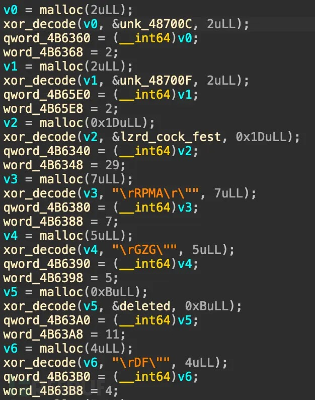 ShadowV2沿用了"LZRD" Mirai变种的架构,但采用了独特的混淆技术。启动时使用密钥0x22的简单XOR密码解密其配置。