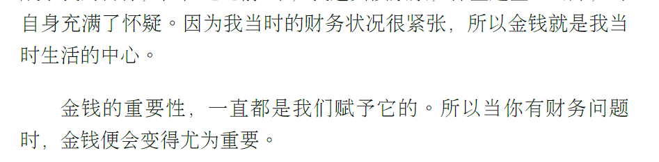 当财务情况不好的时候 ,钱变得无比重要。确实,毕竟吃喝拉撒都要钱,有钱的时候吃大餐买好的衣服鞋子,感觉不到什么,没钱的时候,想要吃好,打个车都舍不得。