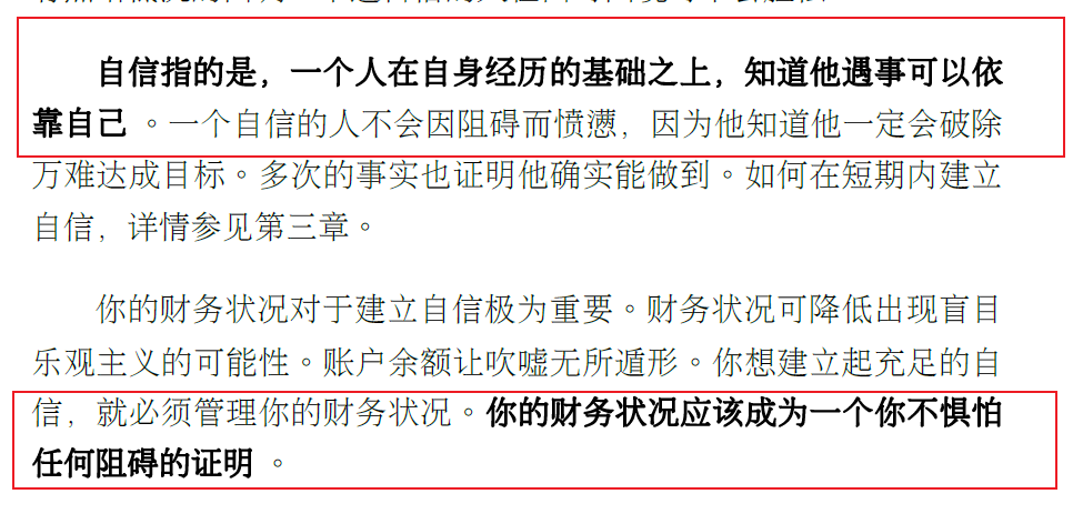 自信 作者认为 经过过往的经历 相信自己能够靠自己解决问题, 这就是自信