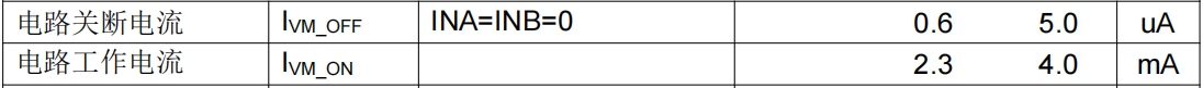 - 待机电流(INA=INB=0):<5μA 极低待机功耗,适合电池常供电设备。