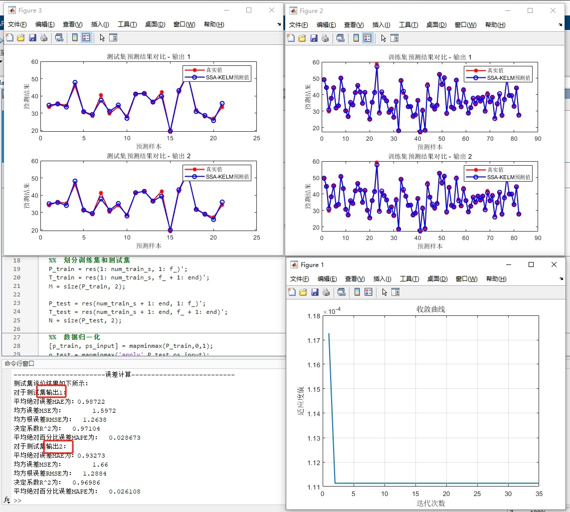SSA-KELM多输入多输出回归 基于麻雀搜索算法(SSA)优化核极限学习机(KELM)的数据多输出回归预测,Matlab代码,可直接运行,适合小白新手(多输入多输出回归预测) 程序已经调试好,仅需根据需要修改outdim值(输出个数)替换数据集即可运行数据格式为excel [憨笑]若需要保存模型预测新数据的输出值也可以私信定制 需要其他算法都可以做 1、运行环境要求MATLAB版本为2019b及其以上 2、评价指标包括:R2、MAE、MBE、RMSE等,图很多,符合您的需要 3、代码中文注释清晰,质量极高 4、测试数据集,可以直接运行源程序 替换你的数据即可用 适合新手小白 5、 保证源程序运行, 代码只是个工具,无法替换数据就达到你想要的效果,考虑好再