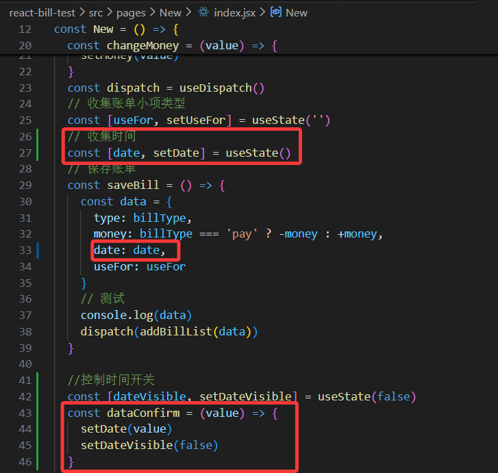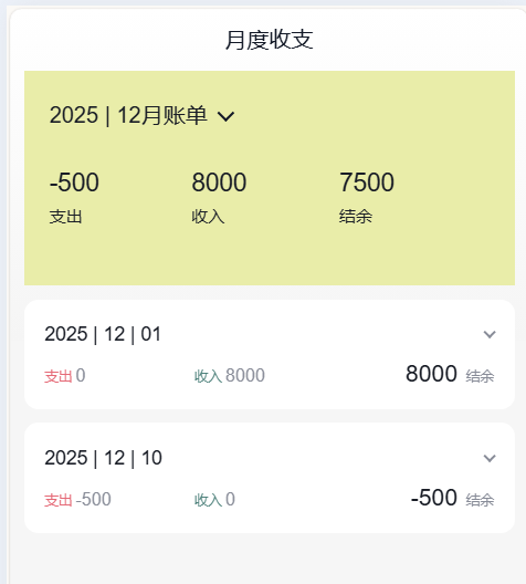 - 组件中收集接口数据(type-账单类型/money-账单金额/date-记账时间/useFor-账单type