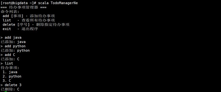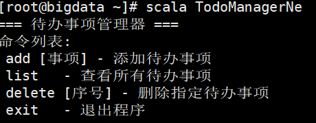 println("命令列表:") println(" add [事项] - 添加待办事项")