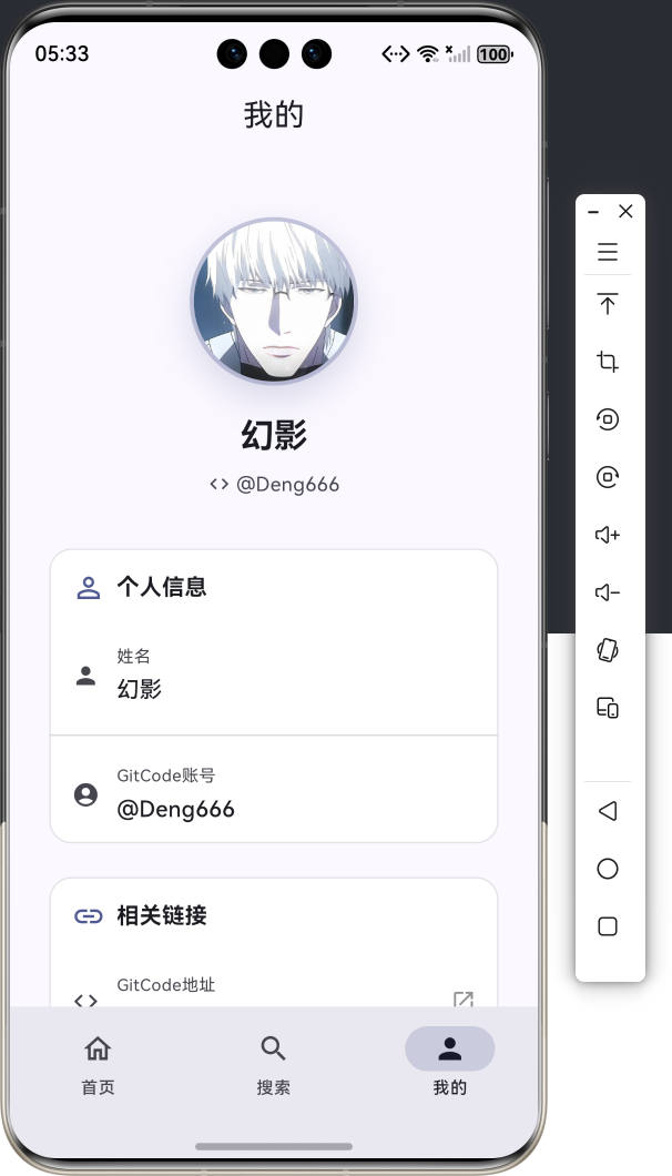 **GitCode 地址 :**在 lib/pages/main_navigation/profile_page.dart:11 ,将 'https://gitcode.com/byyixuan' 替换为自己的 GitCode 主页地址。