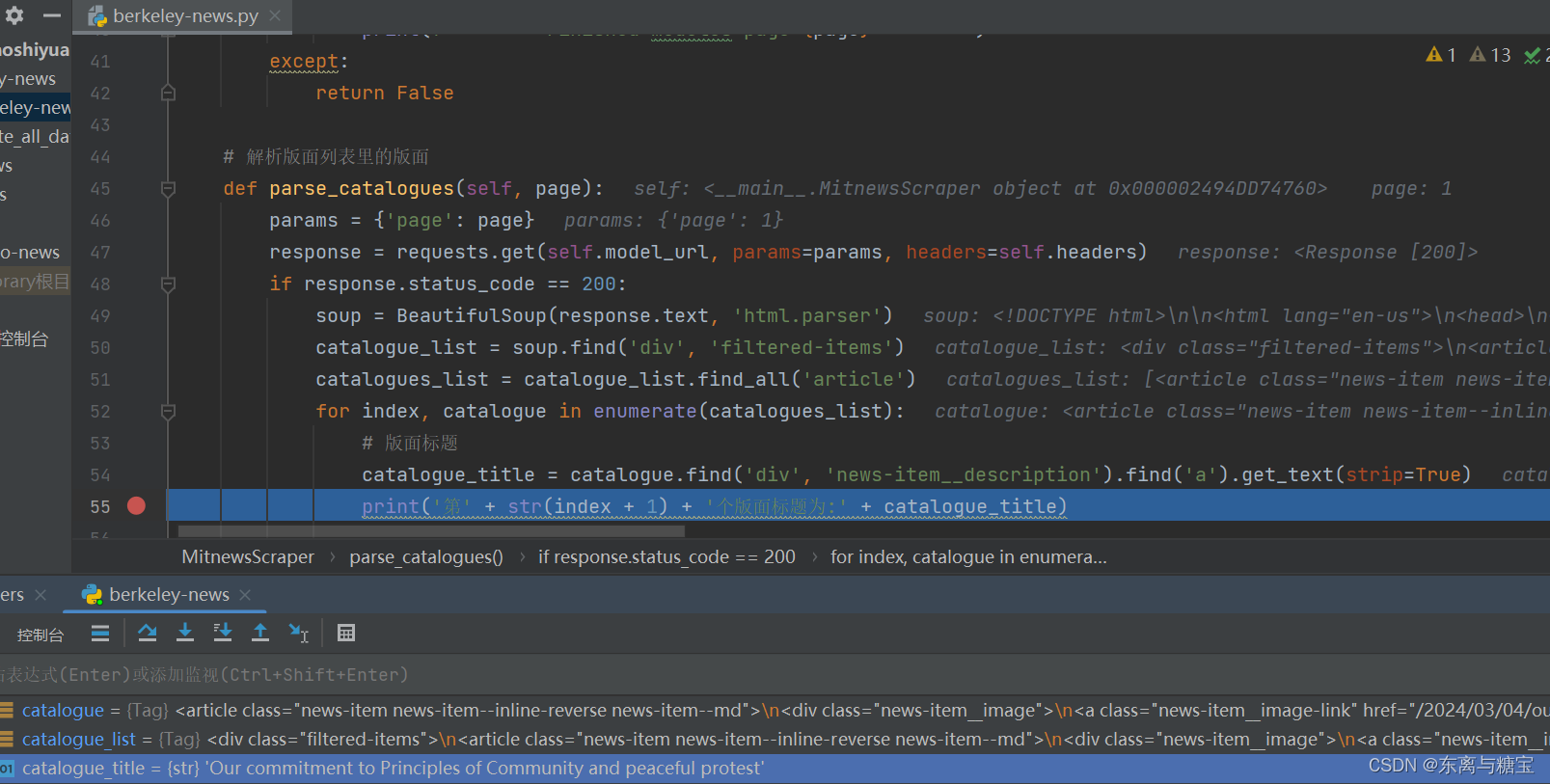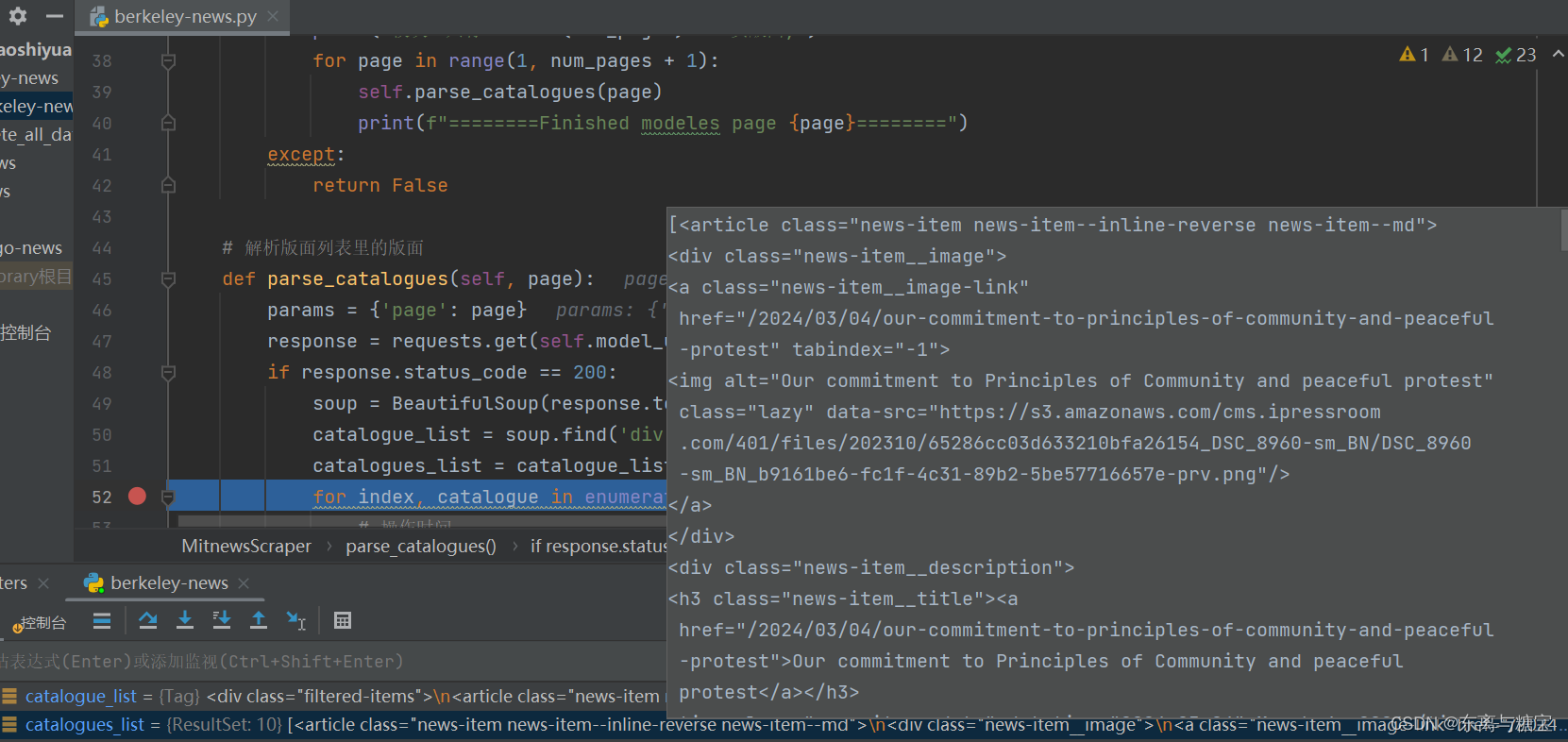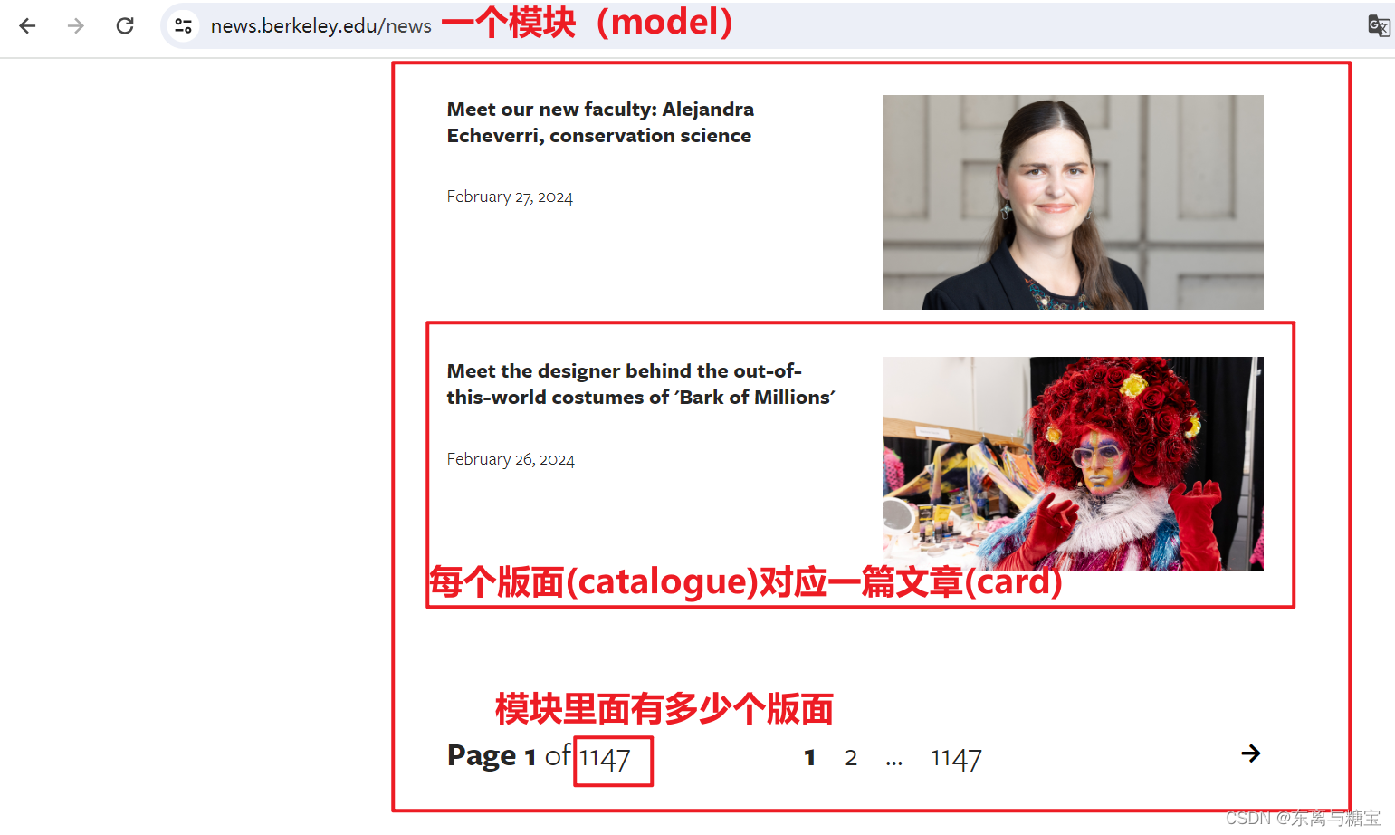 我们可以按照新闻模块、版面、和文章对网页信息进行拆分,分别按照步骤进行爬取