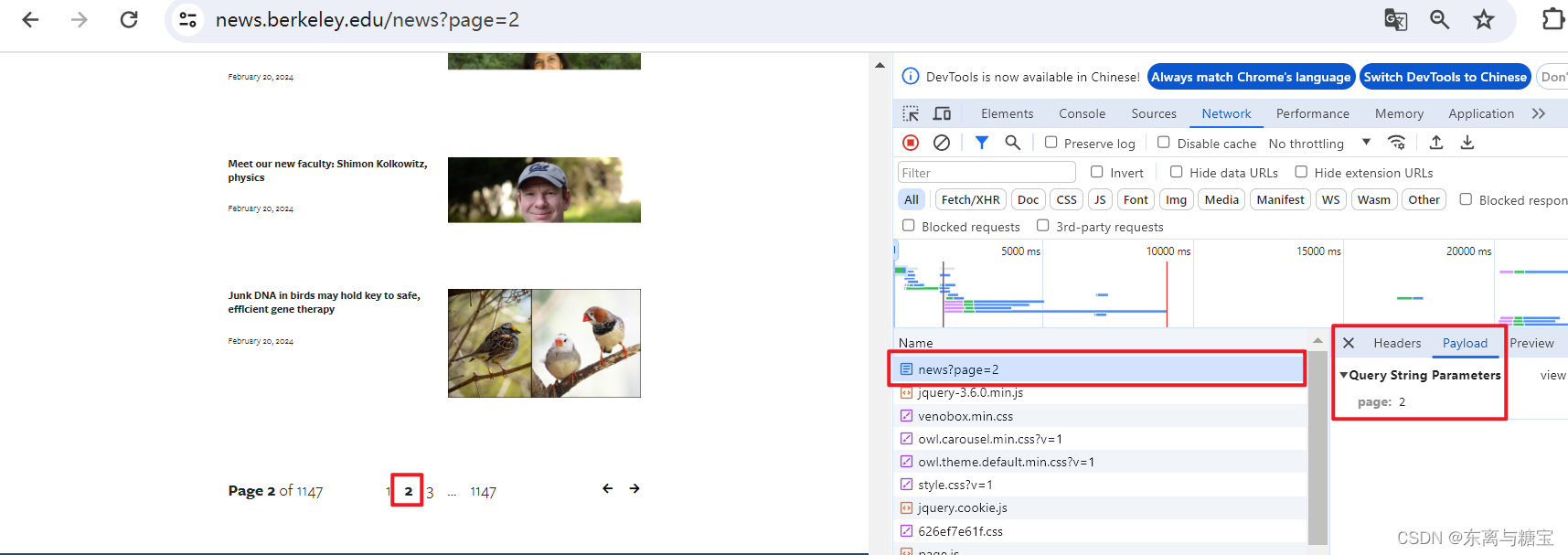 - f12打开控制台,点击网络(network),通过切换页面观察接口的参数传递,发现只有一个page参数