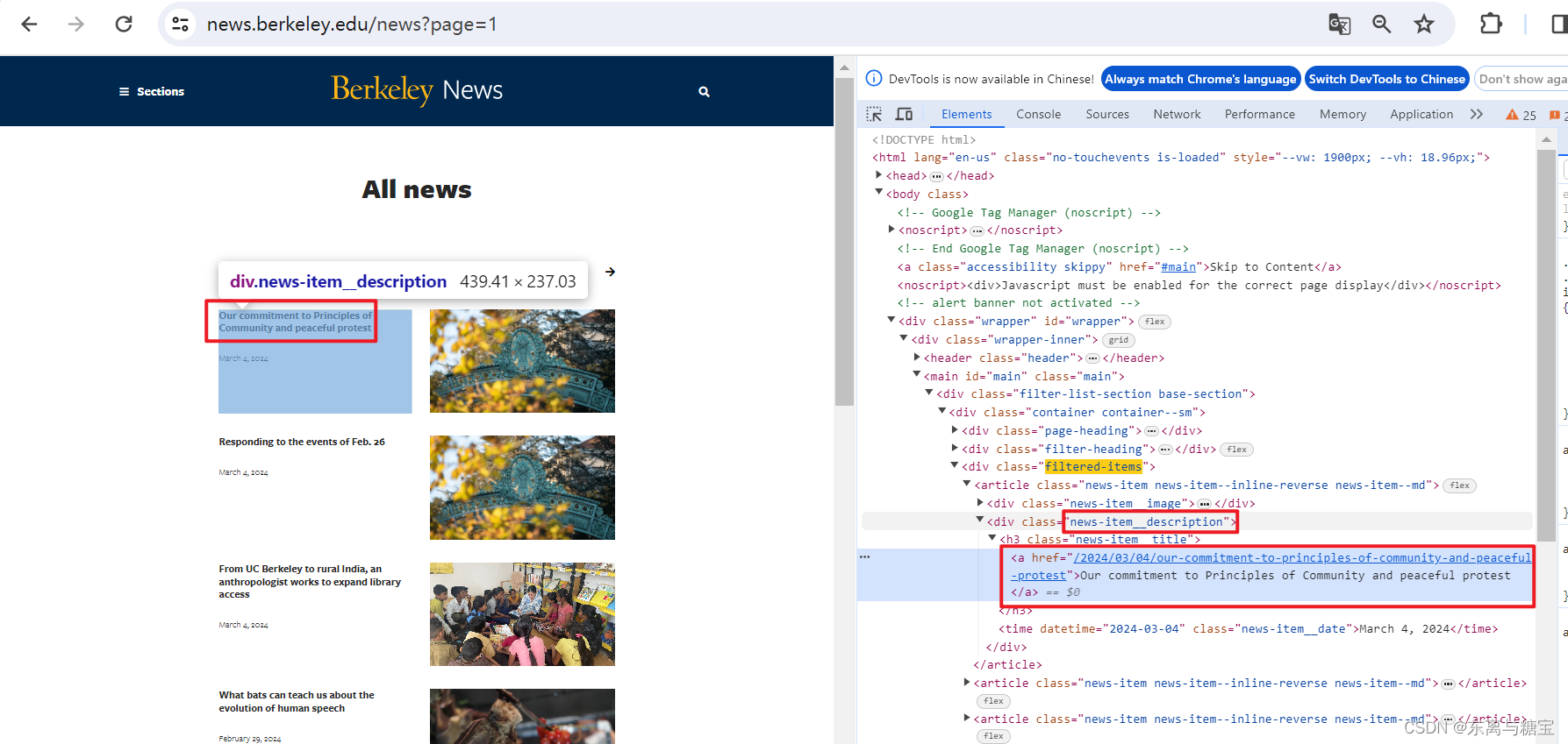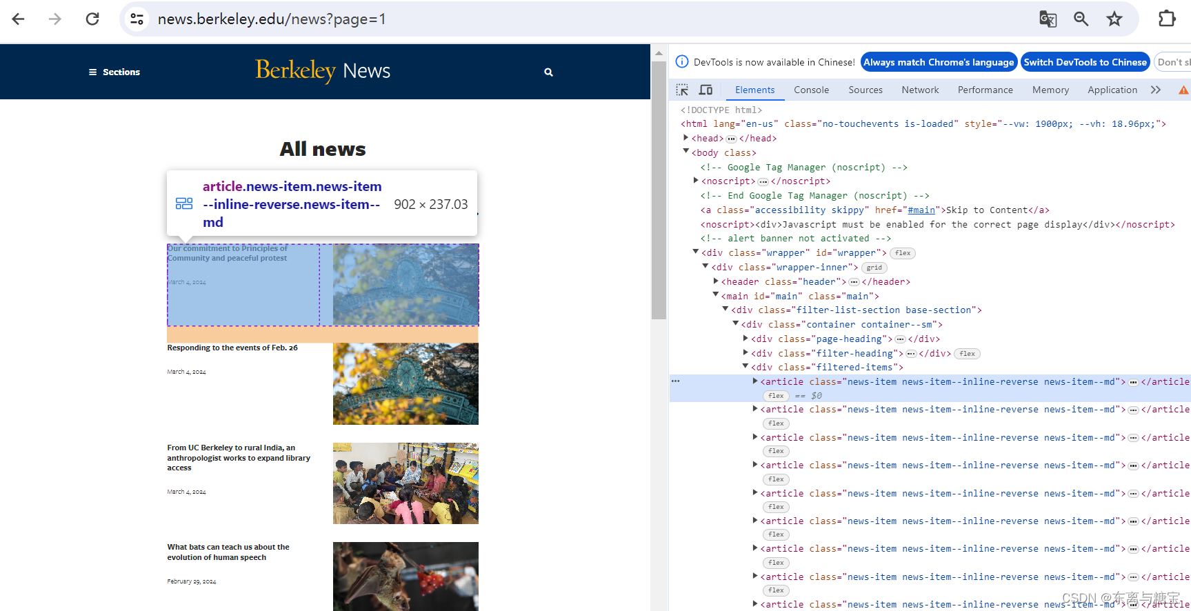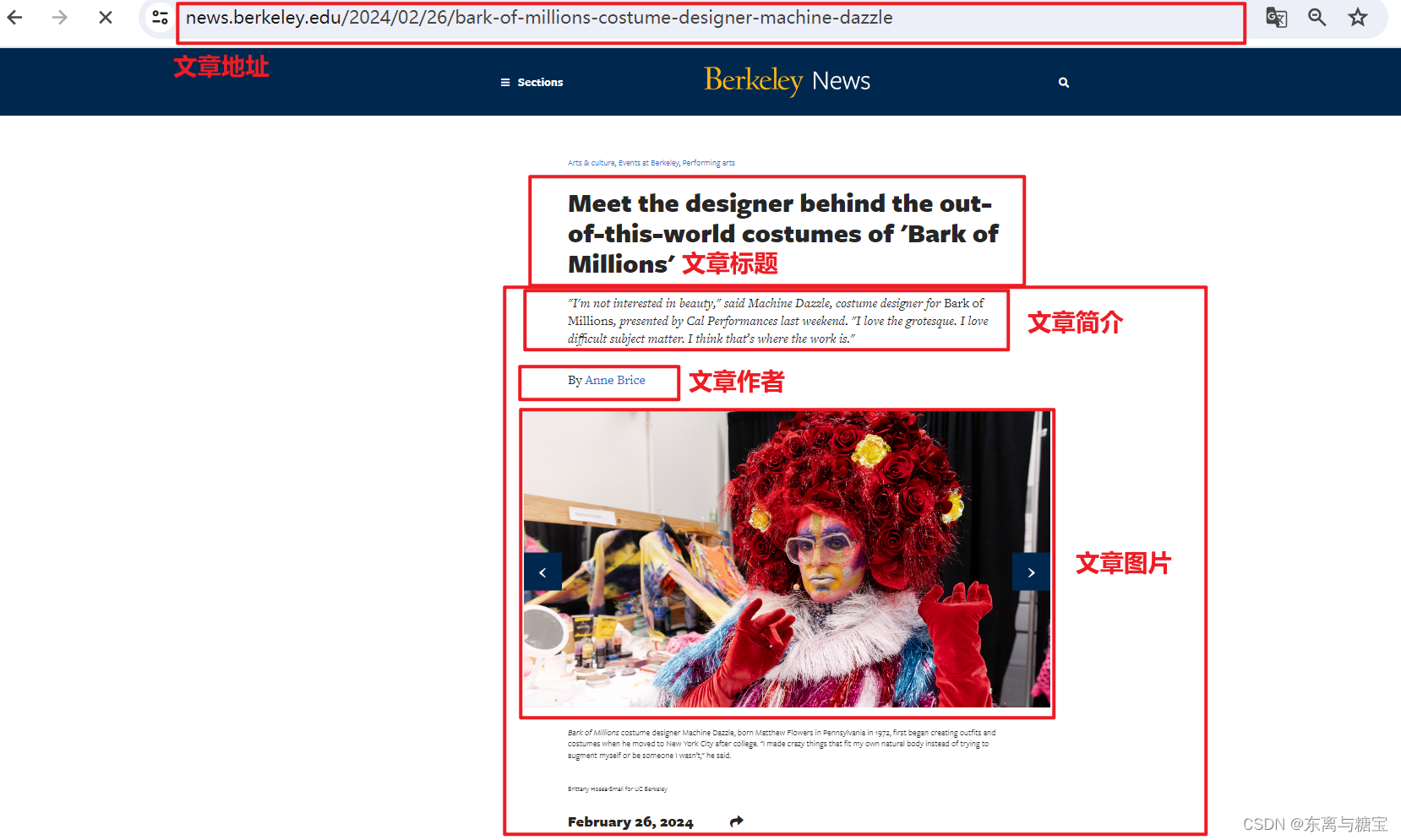 爬取https://news.berkeley.edu/的字段,包含标题、内容,作者,发布时间,链接地址,文章快照 (可能需要翻墙才能访问)