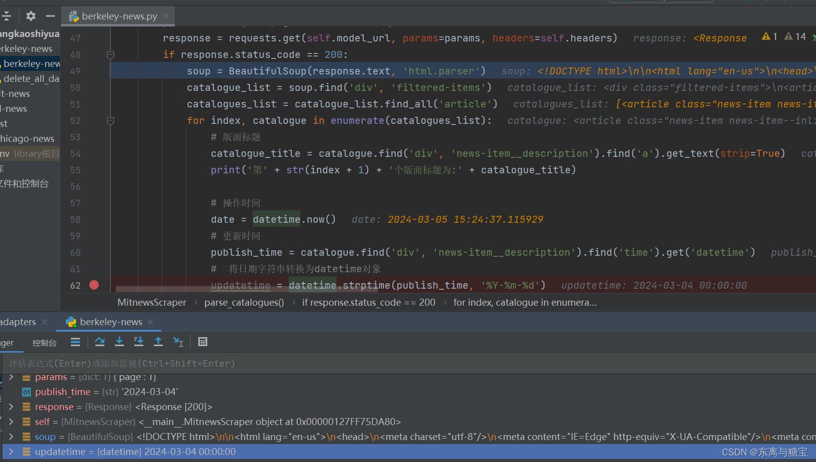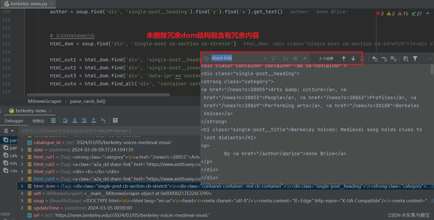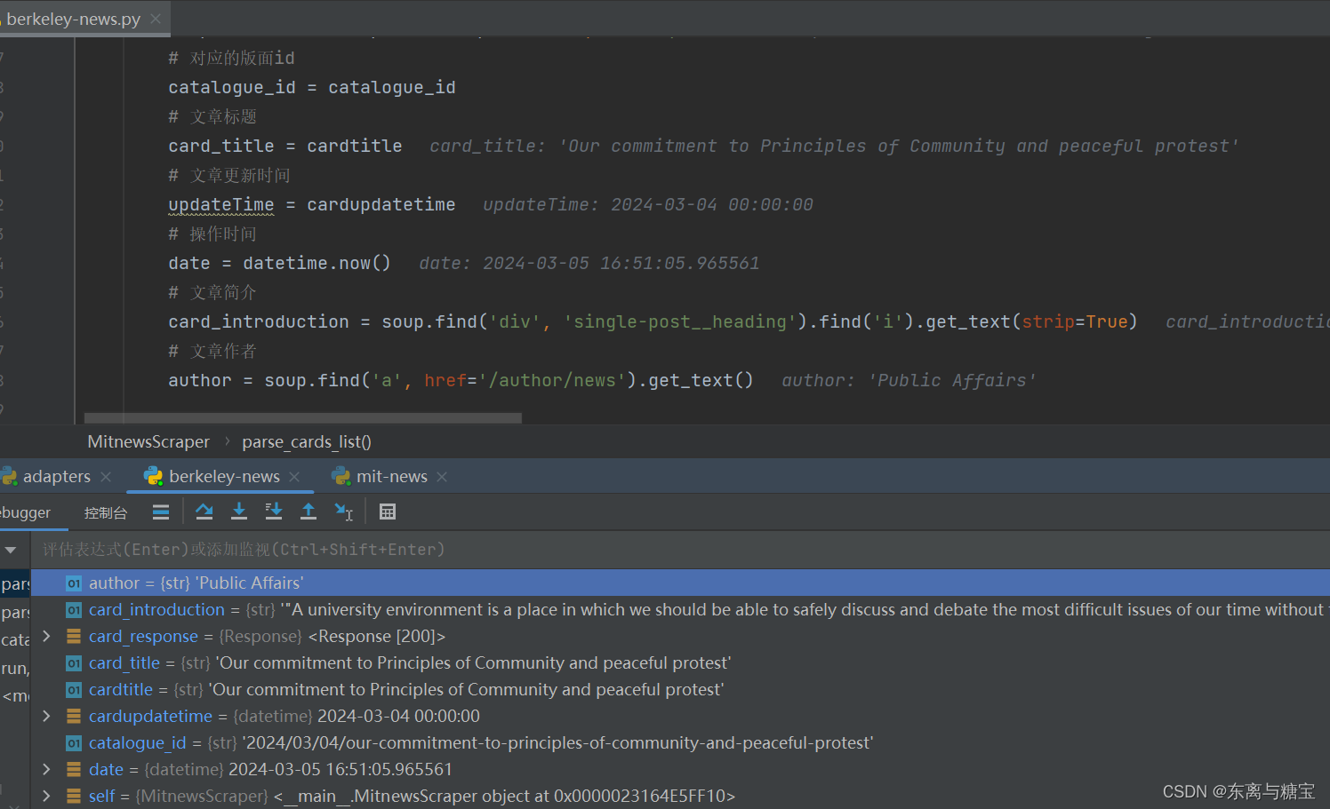 爬取https://news.berkeley.edu/的字段,包含标题、内容,作者,发布时间,链接地址,文章快照 (可能需要翻墙才能访问)