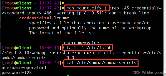 [root@client ~]# chmod 600 /etc/samba/samba.secrets