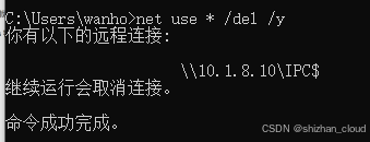 Win+R输入cmd打开命令提示符,执行命令强制删除所有网络共享连接,命令如下:bashnet use * /del /y执行后会断开当前所有的网络驱动器和 Samba 共享连接,清除旧用户的连接会话。