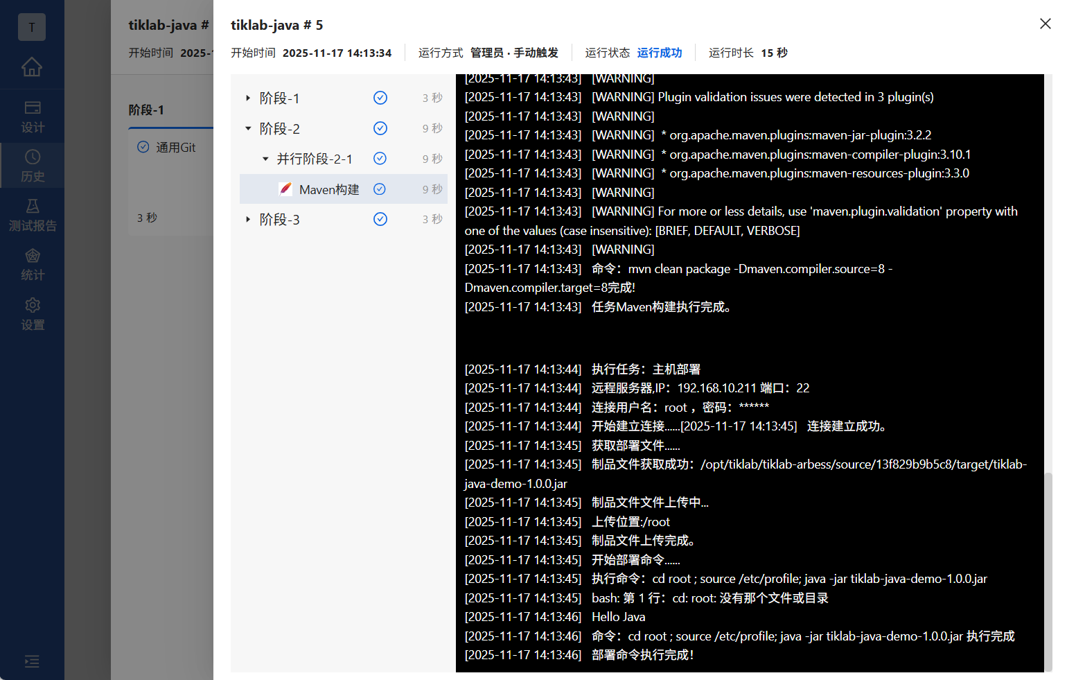 流水线运行同时,可以点击相关流水线,查看运行实时日志。