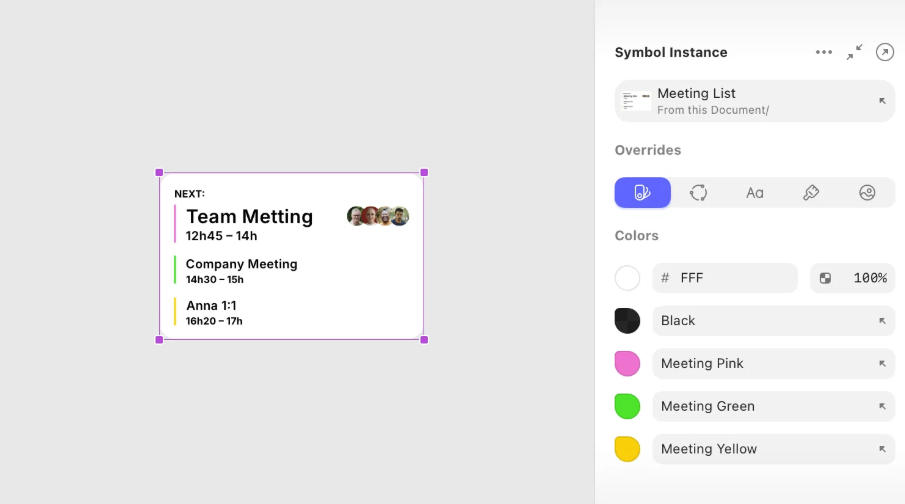 符号覆盖(Symbol Overrides)功能优化:预览图更大,颜色变量名称完整显示;覆盖项超15个时,系统按组件类型自动分组。