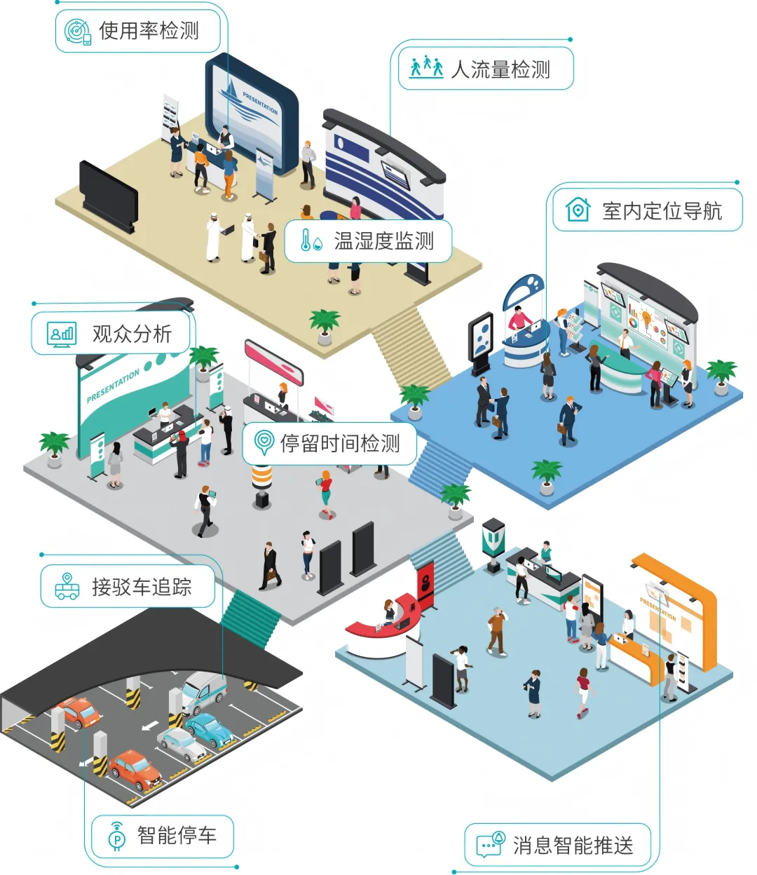 放眼当下常见的展览与活动场景,普遍存在着人群拥挤、导航低效、信息传递滞后、停车不便等痛点。云里物里智能展览/活动产品方案,深度整合访客行为分析、室内精准导航、定向信息推送、环境监测、实时人群管控、巡逻路线可视化追踪及接驳巴士动态定位等核心能力,从运营效率优化与访客体验升级双维度全面赋能。
