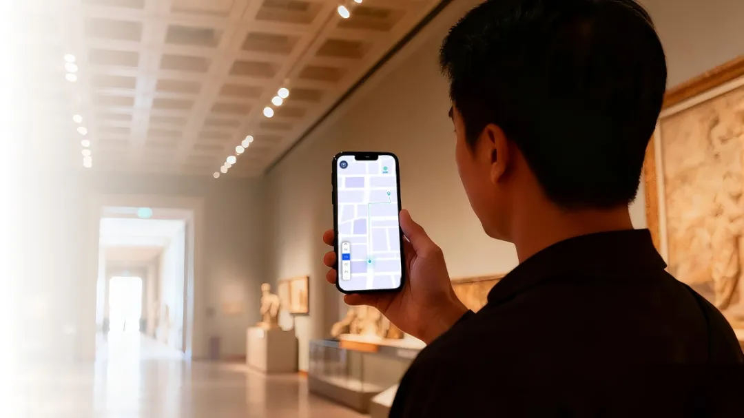 在博物馆天花板部署MBS02,通过RSSI及三边测量法实现米级定位精度,确保游客位置实时更新、准确无误。同时基于定位信息,为游客提供抵达展品或卫生间的最佳路线,并支持AR实景导航,使导览直观高效。
