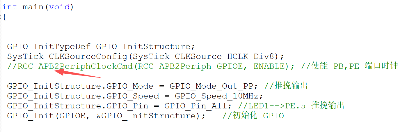 RCC_APB2PeriphClockCmd(RCC_APB2Periph_GPIOE, ENABLE); //使能 PB,PE 端口时钟