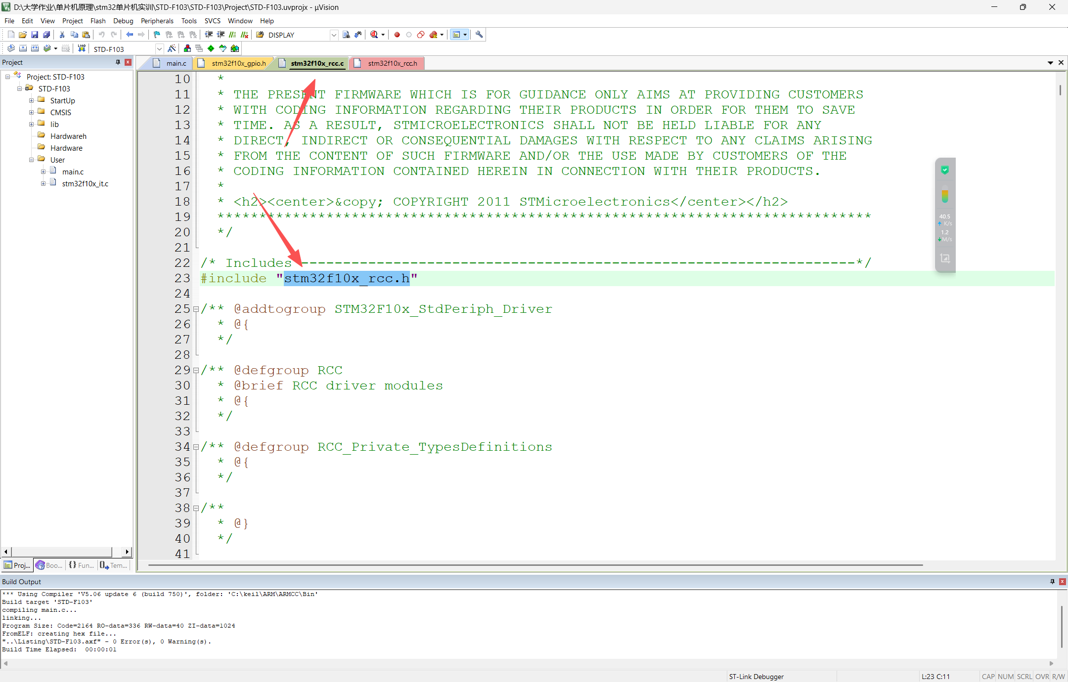 继续右键stm32f10x_rcc.h跳转至stm32f10x_rcc.h