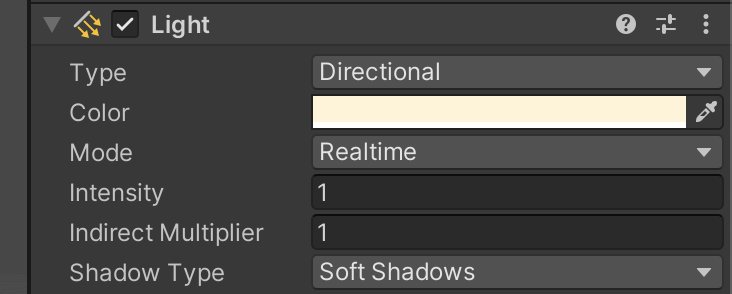 在光源的Light组件中开启阴影,选择软阴影