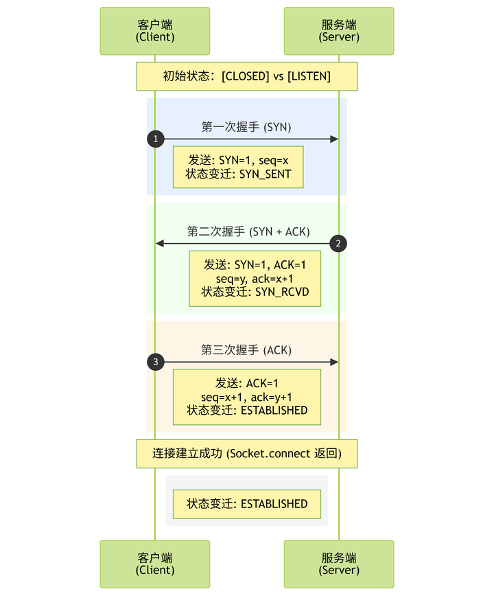当我们写new Socket("ip", 80) 的时候,程序卡住(阻塞)的那一瞬间,就是在进行三次握手。