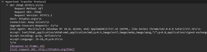 回忆一下Wireshark抓的数据包,我们把这个过程倒推一遍,看看数据在TCP/IP协议栈里是怎么进行封装的。
