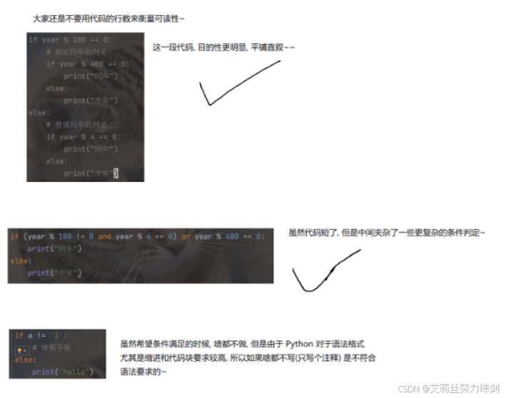 上面关于闰年的代码,个人感觉还是第一种方法更好。我们还是不要用代码的行数来衡量可读性。