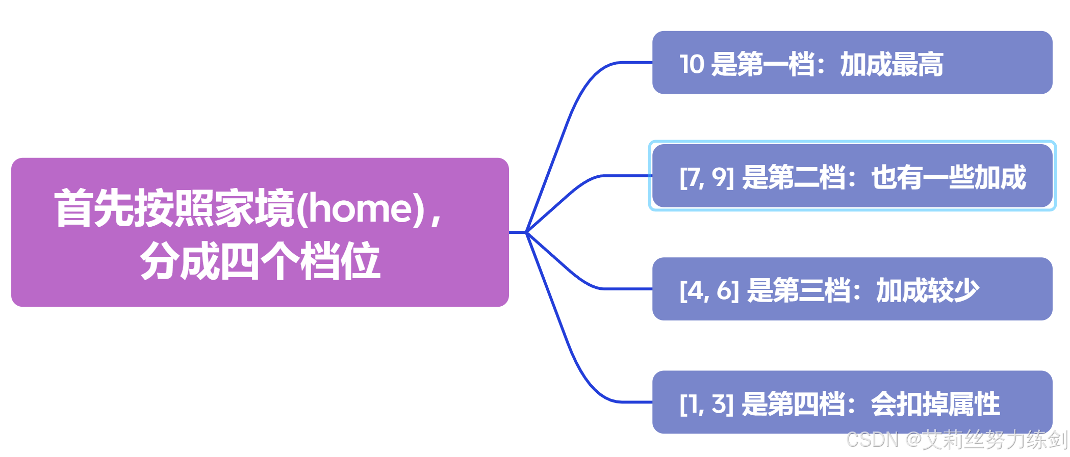 # 分成四个部分属性:颜值,体质,智力,家境,总和不能超过20,初始情况下每一项取值都是1 ~ 10之间