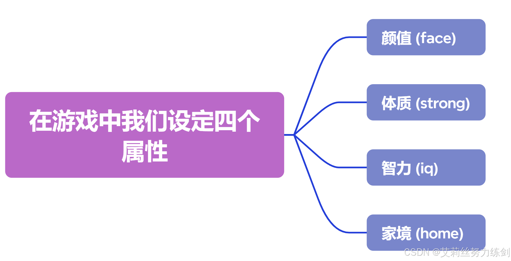 print(f'颜值:{face},体质:{strong},智力:{iq},家境:{home}')
