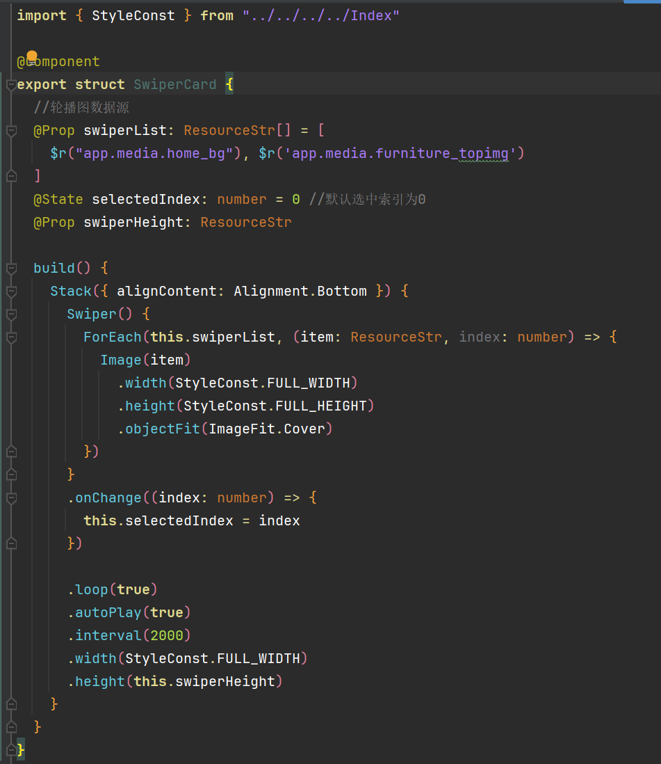 举例:我这个轮播图的UI效果在2个组件中都有使用到,这种属于UI/功能重复的开发,可以考虑封装公共的UI组件,在组件内书写UI,具体界面与能力由需求方实现