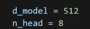 多头注意力 = 把 d_model 切成 n_head 份,每个头自己算一小份,分到n_d维。这里d_model=512, n_head=8 → n_d = 64