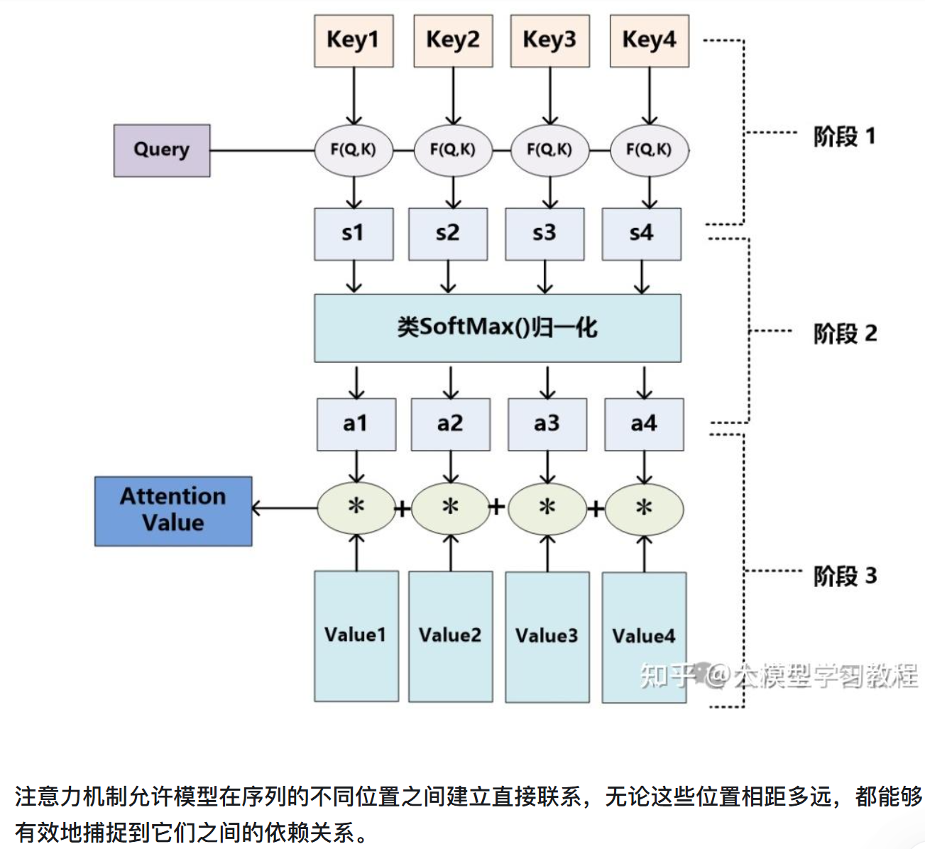 注意力机制允许模型在序列的不同位置之间建立直接联系,无论这些位置相距多远,都能够有效地捕捉到它们之间的依赖关系。