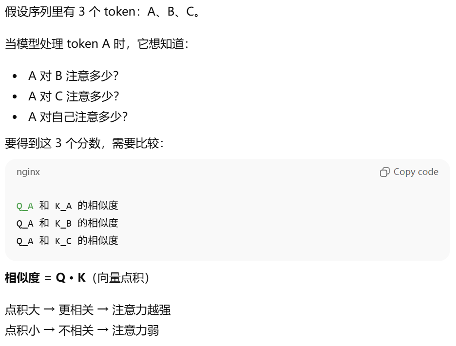| w_q | 把输入变成 Query: 用于问"我应该关注谁?" |