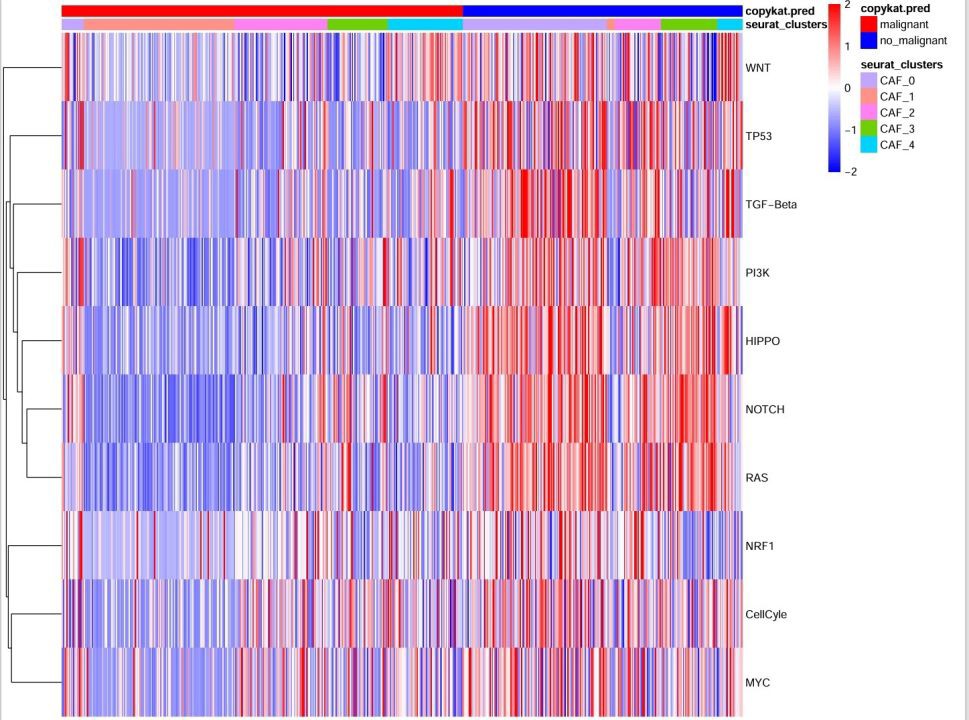 文献复现 :肝细胞癌中癌症相关成纤维细胞(CAF)的特征和基 于单细胞RNA-seq和批量RNA-seq数据构建基于CAF的风险特征 PMID:36211448 实例数据代码 主要内容介绍 01.scRNA:过滤+细胞聚类+降维+成纤维细胞注释 02.cell.pathway:成纤维细胞亚群功能的解析 03.data.pre:高通量测序数据的准备 04.CAF.select:关键成纤维细胞亚群的进一步筛选 05.CAF.gene.set.select:成纤维细胞关键基因集的筛选(差异分析+相关性分析筛选关键的基因集+富集分析分析) 06.CAF.module:风险模型的构建(单因素+lasso+多因素+逐步回归) 07.CAF.module.cli:单因素+多因素+列线图+AUC 比较 08.gene.mut:风险模型中的基因突变特征 09.gene.gsva:关键基因潜在调控的通路 10.gene.immnue:关键基因的免疫异常 11.PDL:免疫治疗的响