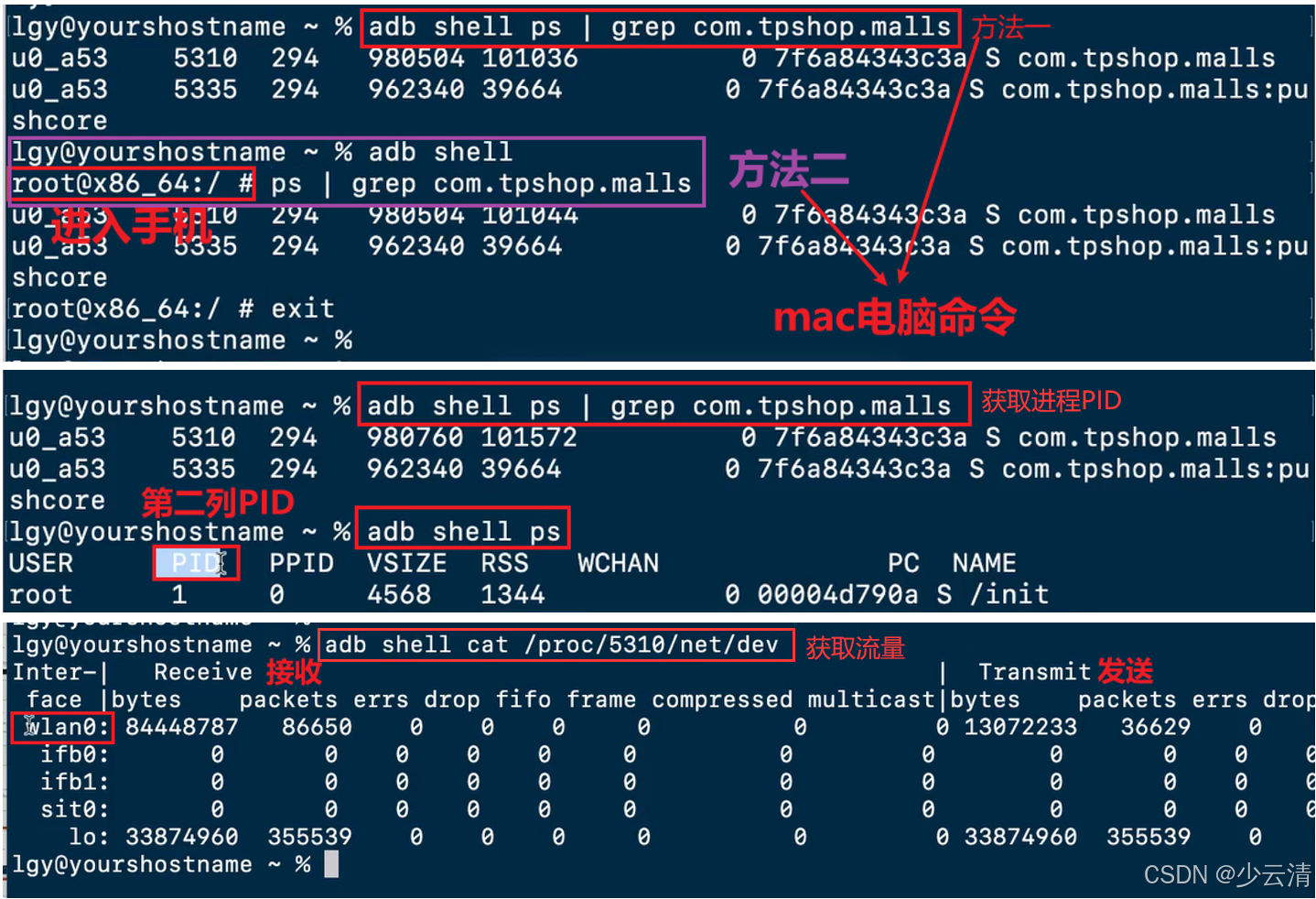 mac: adb shell ps | grep 包名