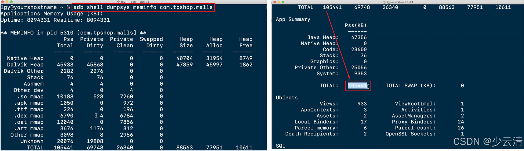 格式:adb shell dumpsys meminfo <包名>