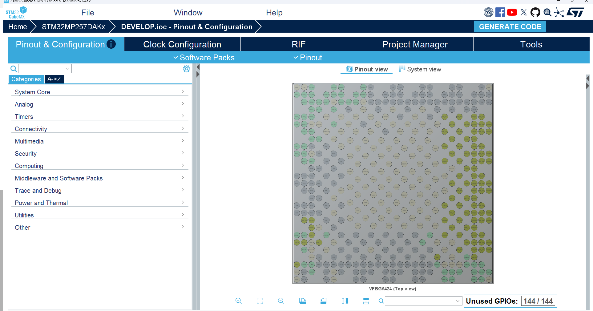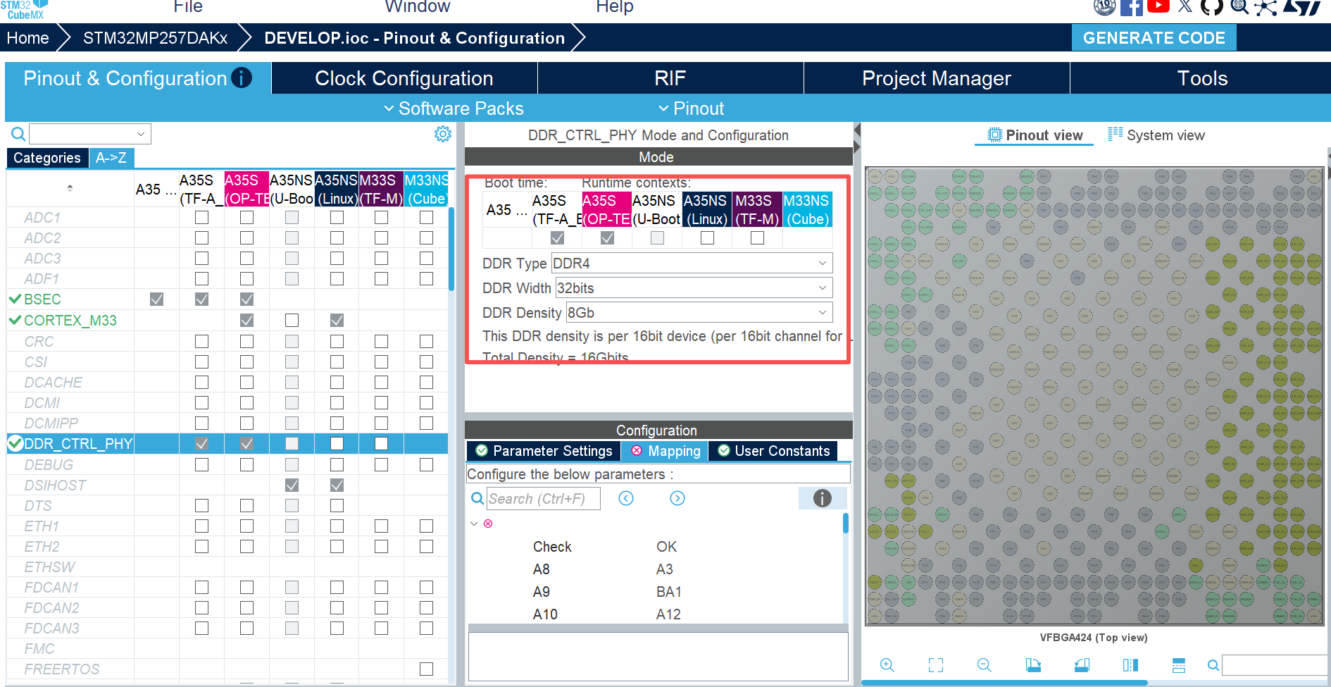 配置DDR_CTRL_PHY如下图所示,点击生成代码