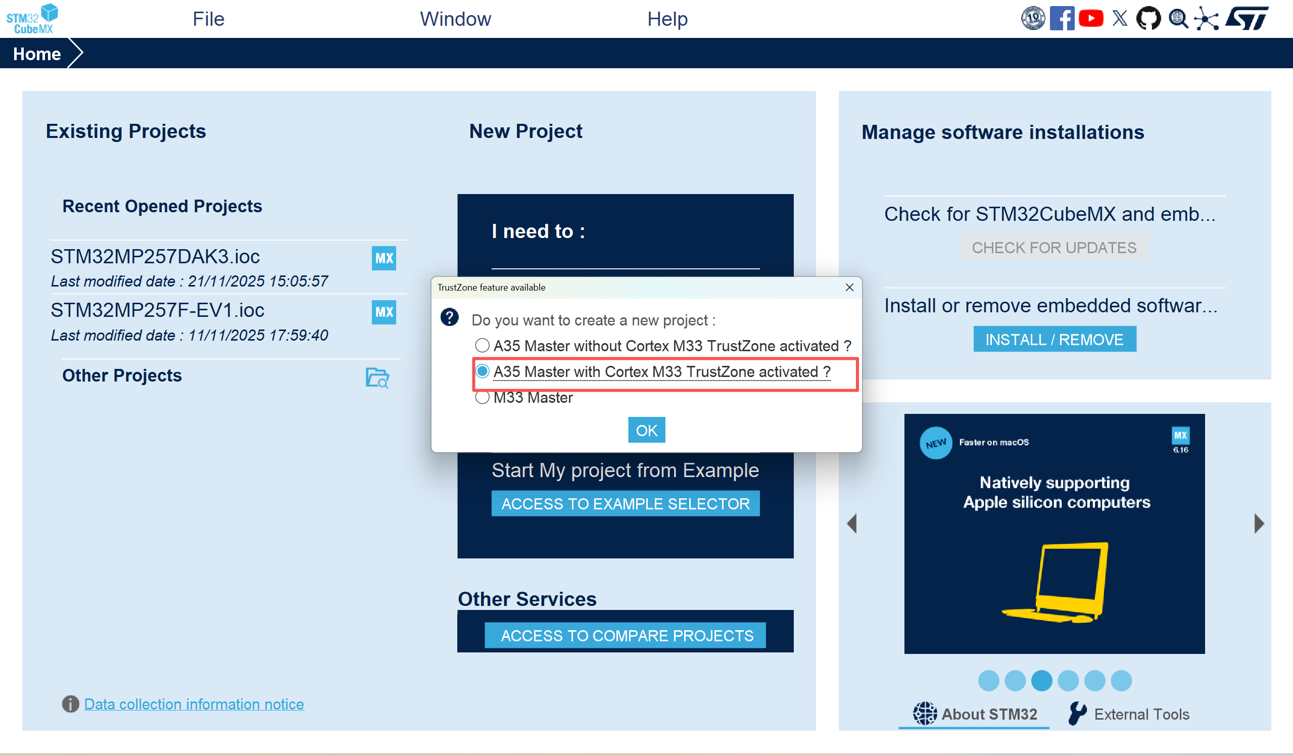 勾选第二个选项 - A35 Master with Cotex M33 TrustZone actived