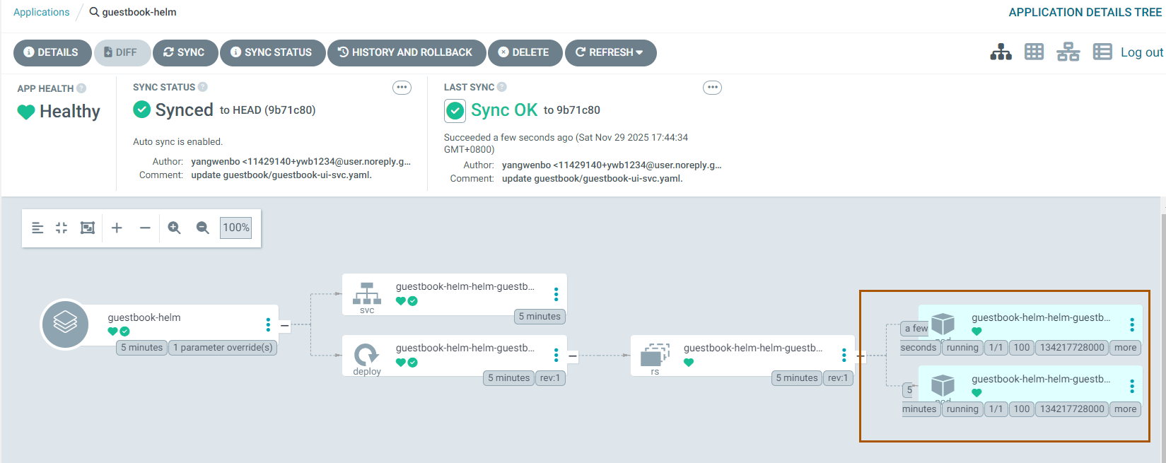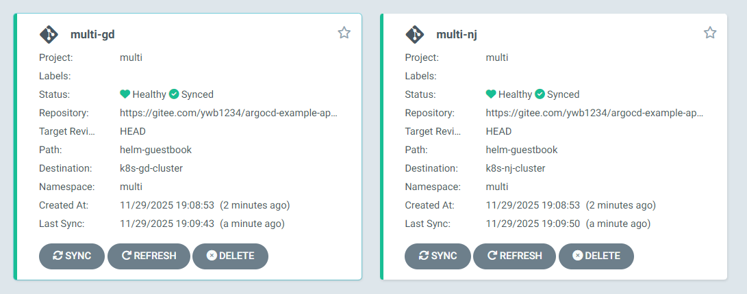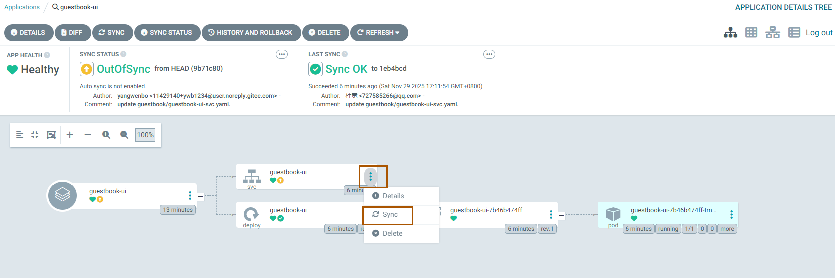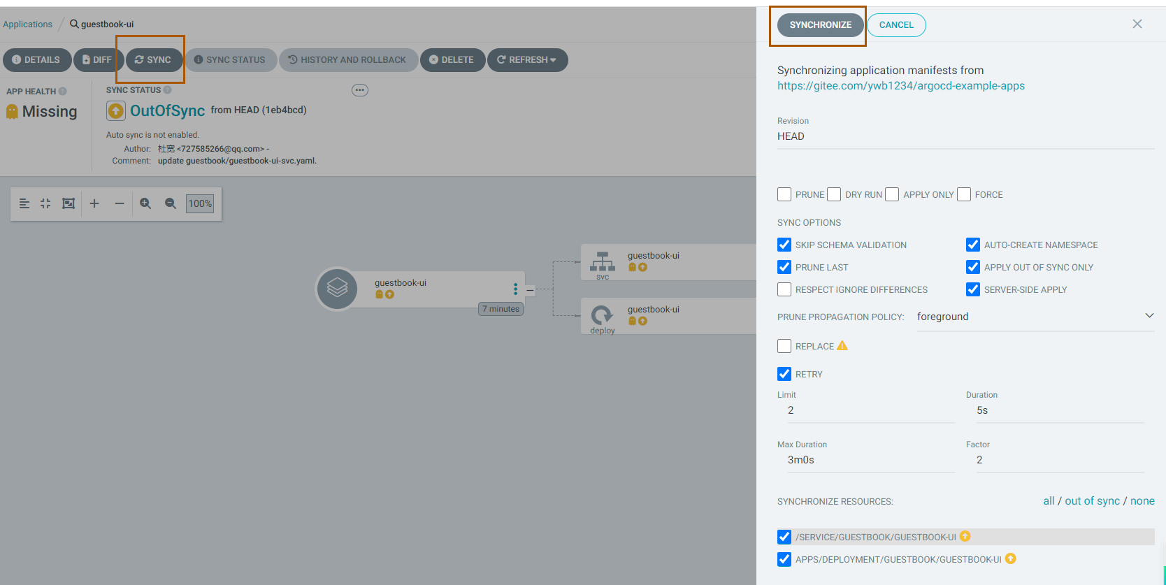 - 自动化同步部署:自动将 Git 仓库中定义的资源部署到 K8s 集群中