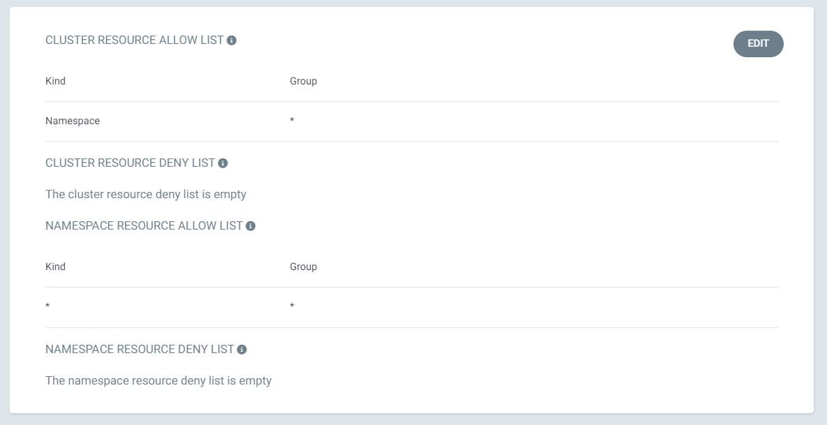 - 部署目标限制:规定项目下的应用只能部署到哪些集群和命名空间