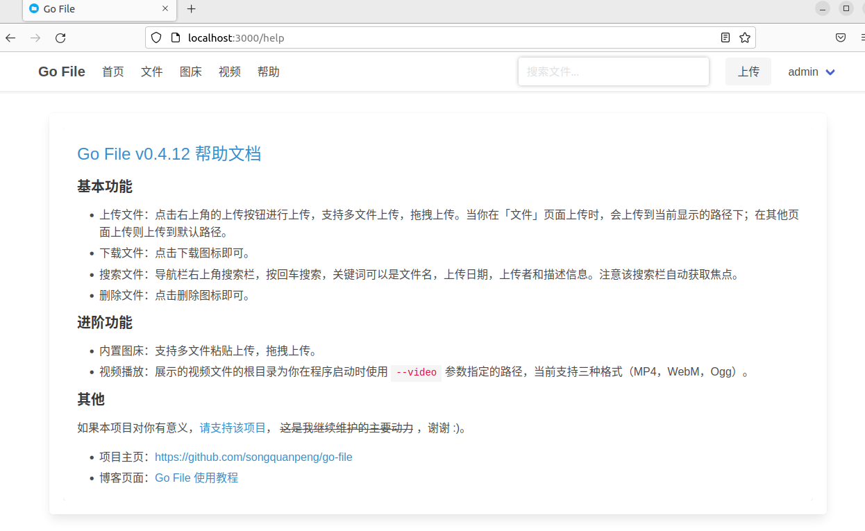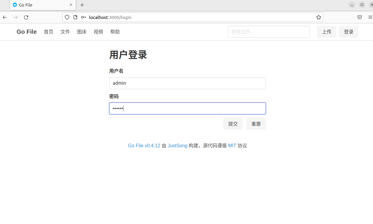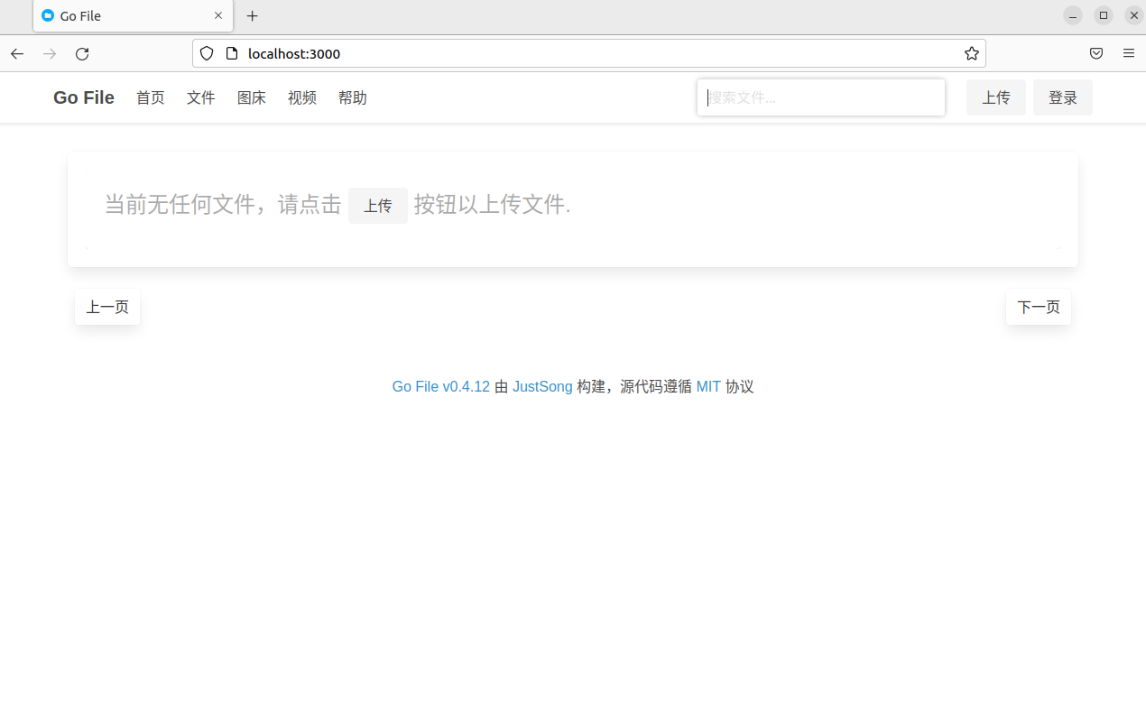 现在您打开Web浏览器输入localhost:3000,就可以访问到Go File的登录页面了,可以看到界面非常简洁明了。