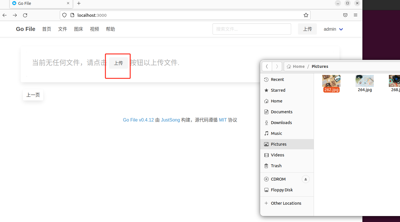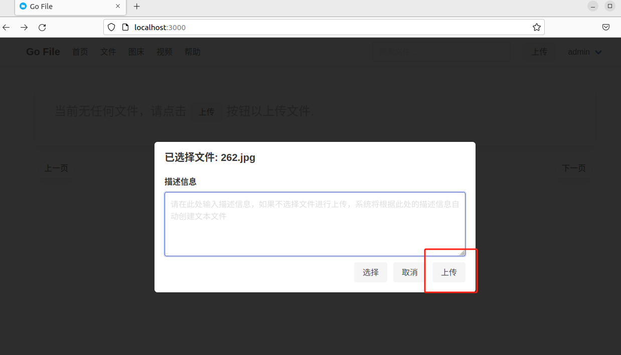 点击上传按钮后,可以选择文件夹中的文件或者直接拖拽文件进行上传: