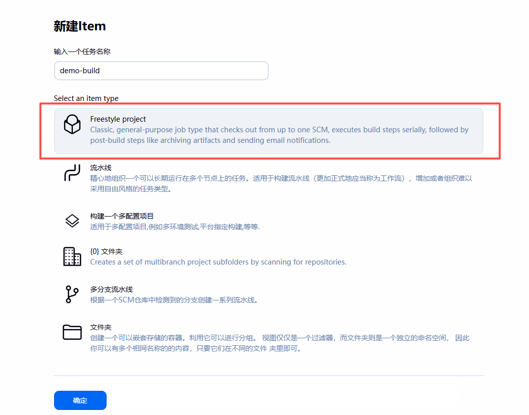输入名称:demo-build
